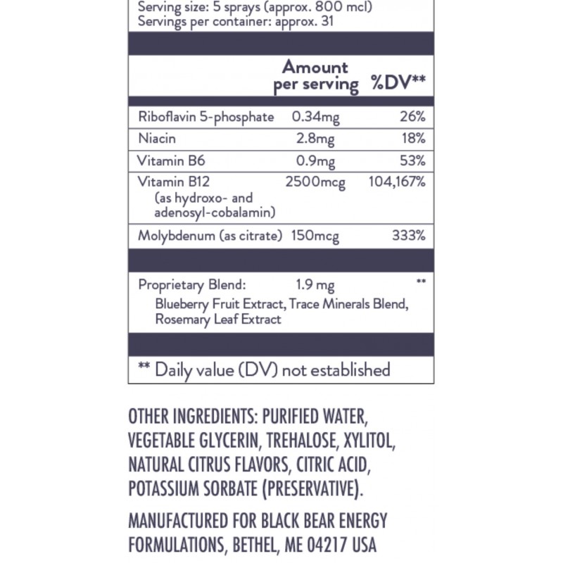 Black Bear, Energy Spray, Витамин B12, спрей, 25 мл