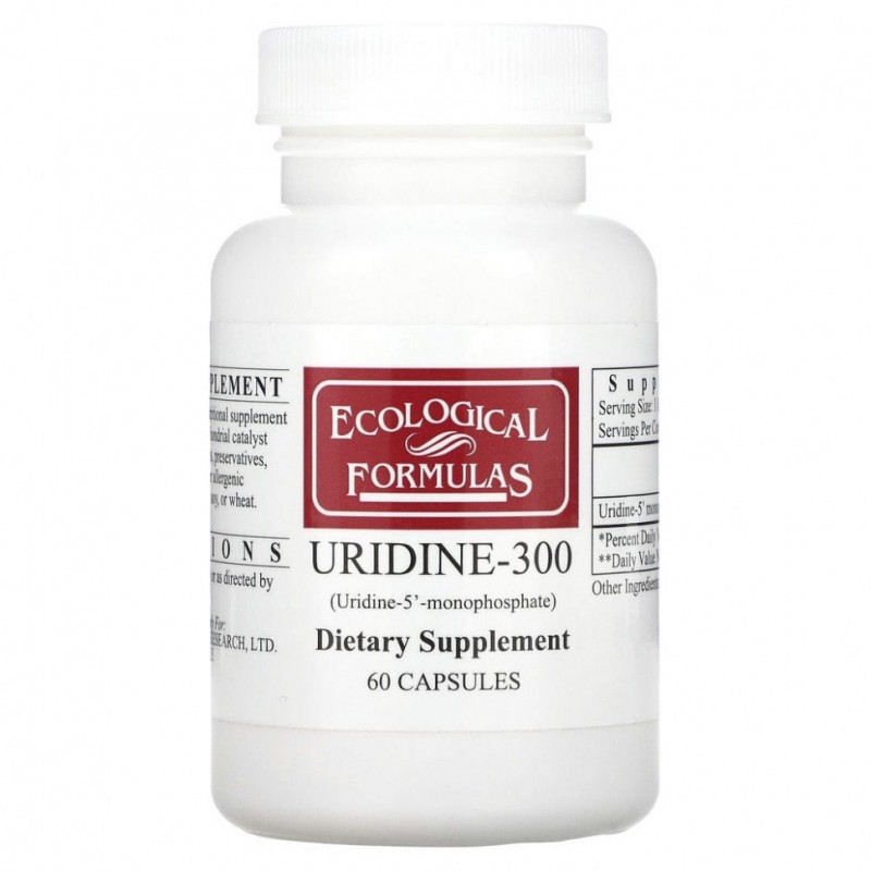 Uridine-300 от Ecological Formulas — это пищевая добавка, содержащая уридин-5’-монофосфат — природный нуклеозид, участвующий в ключевых процессах работы нервной системы и головного мозга. Продукт разработан для поддержки когнитивных функций и общего состояния нервной ткани.
