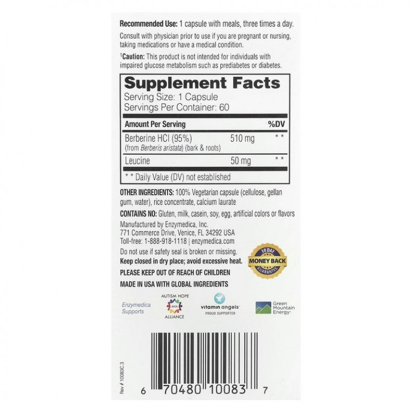 Берберин Enzymedica – биологически активная добавка, содержащая стандартизированный экстракт берберина, известного своими свойствами поддержки нормального уровня глюкозы в крови, пищеварительной функции и метаболизма. Препарат способствует поддержанию здоровой работы печени и кишечника, оказывает мягкое антибактериальное и противовоспалительное действие. Рекомендуется использовать в составе сбалансированного питания и здорового образа жизни.