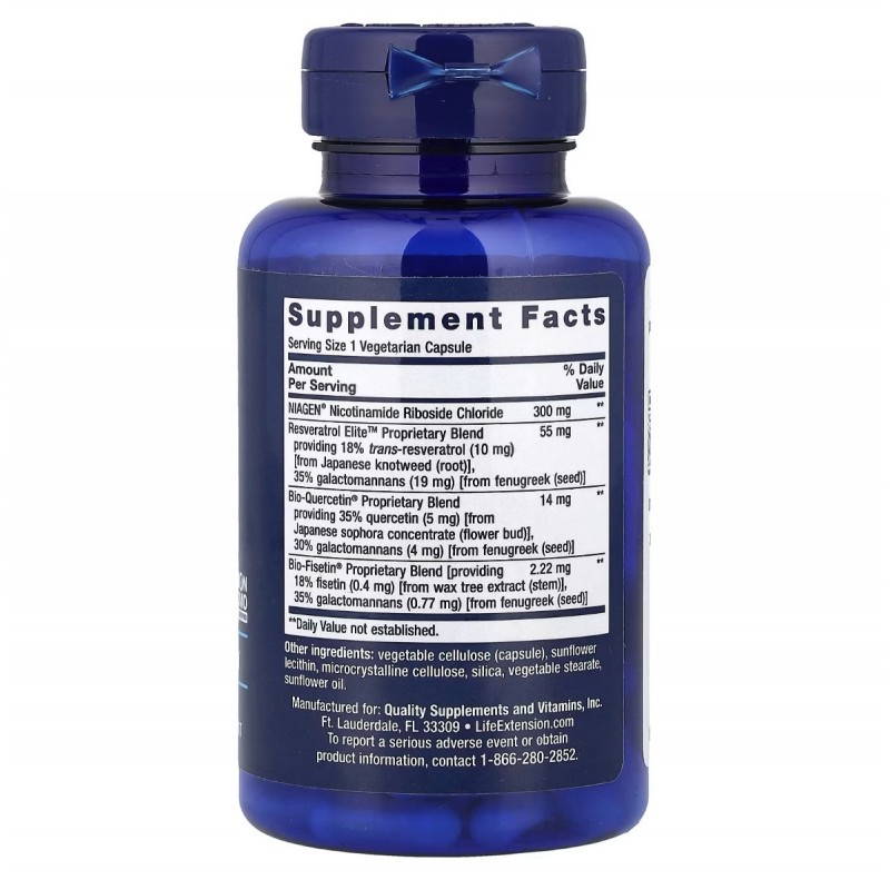 Никотинамид рибозид NIAGEN® повышает уровни НАД+. Ресвератрол способствует поддержанию здоровья в зрелом возрасте. Мы объединили никотинамид рибозид с препаратами транс-ресвератрола, кверцетина и физетина с повышенной биодоступностью, чтобы создать лучшую в своём классе добавку для поддержания здоровья в зрелом возрасте на клеточном уровне.