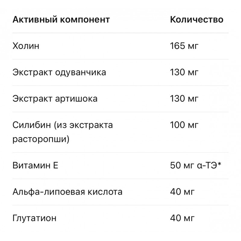• Глутатион — 40 мг — ключевой антиоксидант для клеток печени.