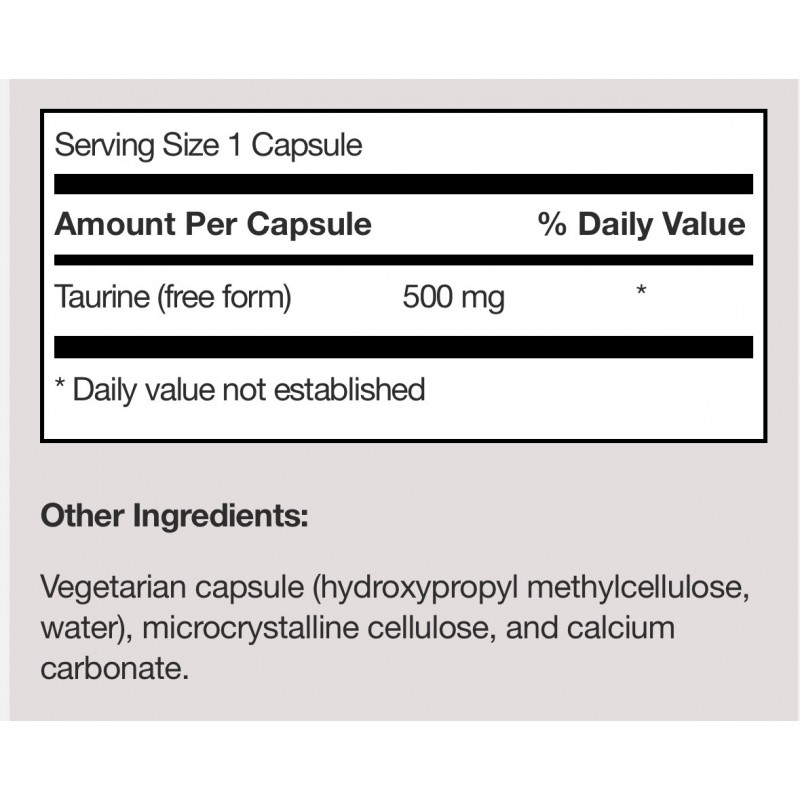 Содержит 500 мг чистого кристаллического таурина в каждой капсуле.