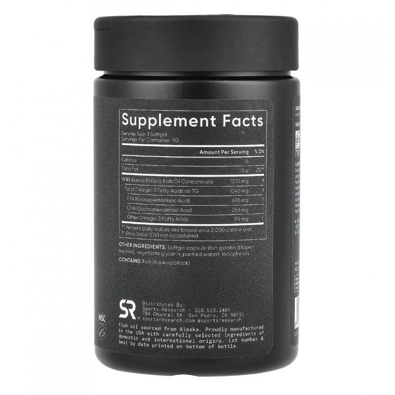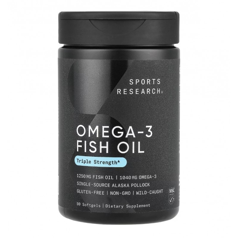 Sports Research, Рыбий жир с Омега-3, тройная сила, 90 капсул