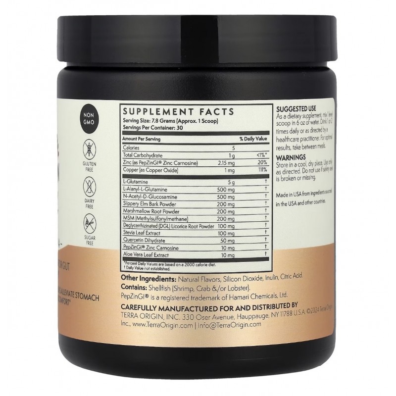 Terra Origin, Healthy gut, добавка для здоровья кишечника, персик и банан, 232 г